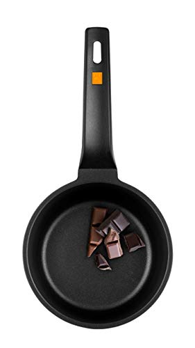 Composición: cacerola 20 cm con tapa 3 litros (16.1 cm),cacerola 24 cm con tapa 4 litros (16.9 cm),cacerola baja 24 cm con tapa 2.3 litros (18.2 cm), cacerola baja 28 cm con tapa 3.1 litros (21 cm),cazo 16 cm (11.8 cm)