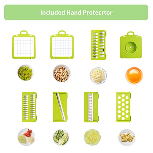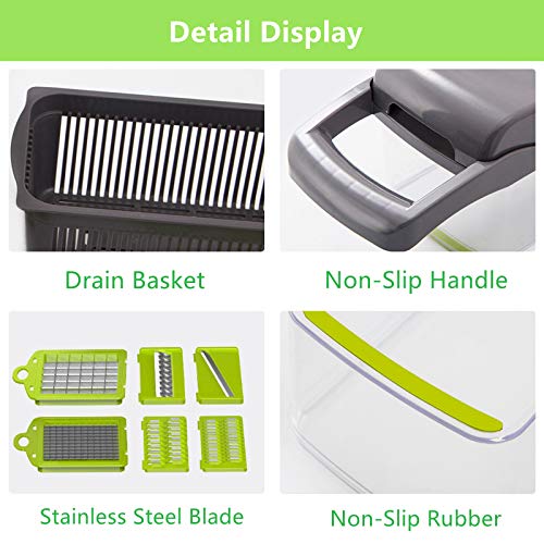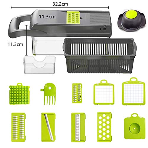 Gran practicidad: el cortador de verduras 12 en 1 incluye 6 cuchillas + 1 herramienta para moler ajo + 1 prensador + 1 separador de huevos + 1 cepillo de limpieza + 1 protector de mano + 1 caja de almacenamiento con cesta de drenaje. Este es un asistente de cocina muy práctico que puede ayudarte a simplificar el proceso de cocción.