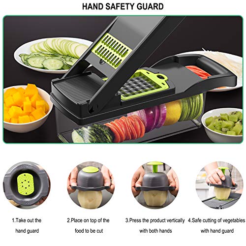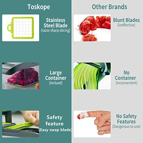 【Ahorro de tiempo y mano de obra】 El uso de este cortador de verduras profesional le ahorrará tiempo y energía y cortará las verduras rápidamente. Nota: no use la hoja para cortar alimentos duros (como zanahorias), evite doblar la hoja. Lave el producto. nuevamente después del uso, lo cual es conveniente para el próximo uso.